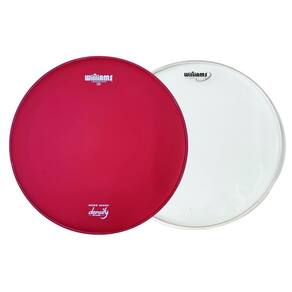 Vermelha coated 2-Ply Dupla Porosa Pele dupla e porosa com filme duplo 10 mil de espessura cada filme Porosidade com acabamento preto Possui óleo entre as peles, no formato de pele hidráulica Boa durabilidade com excelente controle de harmônicos e ressonância Semelhante a Remo Pinstripe Coated e Evans Hydraulic Coated acessíveis Williams é uma marca brasileira de peles importadas Pele acessível com bom custo x benefício