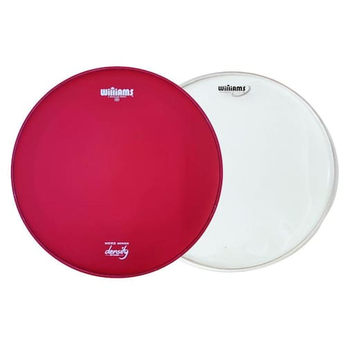 Pele 13'' WCR2 Porosa Density Red Filme Duplo Hidráulica + W1B Resposta Caixa Extra Light Williams Vermelha coated 2-Ply Dupla Porosa Pele dupla e porosa com filme duplo 10 mil de espessura cada filme Porosidade com acabamento preto Possui óleo entre as peles, no formato de pele hidráulica Boa durabilidade com excelente controle de harmônicos e ressonância Semelhante a Remo Pinstripe Coated e Evans Hydraulic Coated acessíveis Williams é uma marca brasileira de peles importadas Pele acessível com bom custo x benefício