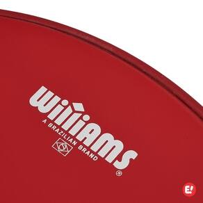 Pele dupla e porosa com filme duplo 10 mil de espessura cada filme Porosidade com acabamento preto Possui óleo entre as peles, no formato de pele hidráulica Boa durabilidade com excelente controle de harmônicos e ressonância Semelhante a Remo Pinstripe Coated e Evans Hydraulic Coated acessíveis Williams é uma marca brasileira de peles importadas Pele acessível com bom custo x benefício