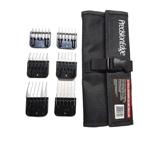 Kit Pentes Adaptadores 6 Peças Aço Para Máquina De Tosa A8S Pentes Adaptadores Profissionais da PrecisionEdge possuem um encaixe fácil, dentes em aço inox desliza facilmente nos pelos e proporcionando um corte preciso. Uso somente na máquina de tosa A8S Precision edge. Acompanha estojo em tecido para armazenamento. Tamanhos 1/8 = 3 mm 1/4 = 6 mm 3/8 = 9 mm 1/2 = 12 mm 3/4 = 19 mm 1 = 25 mm