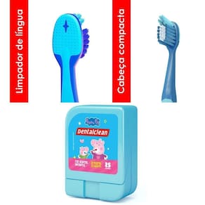 O Kit Dentalclean Infantil Peppa Pig e George foi especialmente desenvolvido para agradar e incentivar a escovação diária, que vai salvar o sorriso do seu filho. Com um lindo estojo para viagem, leve a Peppa Pig e George para passear com os seus filhos na escola, no parque, nas aulas de culinária ou no futsal. A linha contém um kit completo, com Escova, Gel Dental 50g com flúor e Fio Dental, que manterá seu filho longe das bactérias e das cáries.