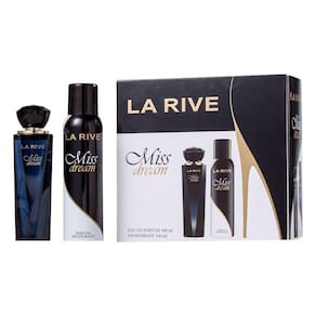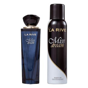 Características Conjunto La Rive Miss Dream Pirâmide Olfativa Topo: Bergamota, Cassis, Groselha preta e Fruta exótica. Corpo: Sândalo, Jasmim, Magnólia, Notas de leite e Rosa. Fundo: Feijão de tonka e Baunilha. Ocasião Ideal para marcar presença nos eventos em que deseja se tornar inesquecível. Kit Perfume Miss Dream F 100ml + Desodorante 150ml La Rive Ean: 5901832067795