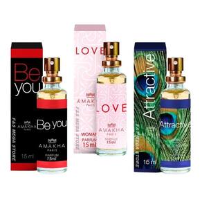 O Kit 3 Perfume Feminino Amakha Paris Be You Love Attractive é perfeito para quem busca fragrâncias marcantes e de qualidade. Composto por 3 perfumes de 15ml cada, esse kit oferece uma variedade de opções para você escolher o aroma que mais combina com você.