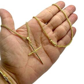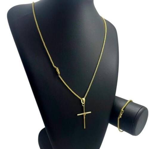 Kit Peruano 3mm + Cruz Amarrada Banhado a Ouro 18K Detalhes do Produto: Material: ligas metálicas de alta qualidade, especialmente tratadas para fixação e absorção do ouro, com acabamento em verniz protetor. Aparência: visual idêntico ao ouro maciço. Produção: artesanal, com atenção meticulosa aos detalhes. Banho: 10 camadas espessas de ouro 18k, finalizadas com verniz antialérgico . Elos: soldados varia conforme o modelo . Pedras: zircônias brilhantes cravejadas quando aplicável . Tamanhos Disponíveis: Cordões Masculinos: 70cm padrão e 60cm sob consulta/Pedido Via Chat . Cordões Femininos: 50cm padrão e 45cm sob consulta/Pedido Via Chat . Pulseiras: 21cm padrão ; tamanhos de 18cm a 23cm sob consulta/Pedido Via Chat. Pingentes: conforme imagens; consulte para mais detalhes via chat. Espessuras Recomendadas para Cordões / Pingentes: P: 1mm a 4mm M: 4mm a 8mm G: 6mm a 13mm Gg: 12mm a 18mm Incluso na Compra: Saquinho de organza para armazenamento seguro. Caixa elegante, perfeita para presente. Cupom de desconto para a próxima compra. Flyer com outros produtos da coleção. Carta de agradecimento personalizada. Adesivo da marca ToJoia18k. Informações Adicionais: : 6 meses termos acompanham o produto . Devolução: 7 dias para devolução sem questionamentos. Envio: despacho em até 24 horas úteis após confirmação do pagamento. Cuidados com a Peça: Evite contato com produtos químicos; aguarde o perfume secar antes de usar. Evite contato com shampoo, condicionadores e suor excessivo. Armazene em local seco, preferencialmente no saquinho de organza fornecido. Uso no mar e piscina é permitido; lave com água corrente e sabão neutro após. Por que Escolher a ToJoia18k Semi-joias luxuosas que combinam estilo, qualidade e sofisticação. Banho espesso de ouro 18k, garantindo brilho duradouro e acabamento impecável. Design exclusivo e produção artesanal, perfeitos para qualquer ocasião. Materiais premium que asseguram durabilidade. Ao escolher uma semi-joia ToJoia18k, você investe em qualidade, elegância e uma experiência única. Aguardamos sua compra Observação: pode ocorrer variação no fecho raramente . Imagens reais, sem edição. Qualquer dúvida, estamos à disposição para esclarecimentos. Marca: Não Informado
