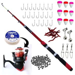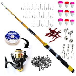 Kit acompanha: - 1 linha ja enrolada ao carretel - 1 vara para molinete telescópica cmik com passadores c.W 1,70m 12-20lbs - 1 molinete taue sy200 3 rolamentos carregado com linha - 1 und dobrável - 2 und sino alerta - 20 und anzol pode ser nº 06, 08 ou 10 - 6 und chumbada pode ser 5 ou 7 g - 3 und snap com girador - 3 und boia lamabari n 01 - 3 und boia lamabari n 03 - 3 und boia lamabari n 05 Kit de vara com molinete ultra light de alta qualidade e resistência, trazendo ao pescador bons momentos de pesca com baixo investimento. Vara telescópica cmik c.W fabricada em fibra de vidro, 1,70m e 12-20libras. Pesa apenas 105 gramas super leve. Com conexão de alumínio para fixar o molinete. Kit recomendado para até 10 kg Especificações técnicas: Vara Fabricante: cmik Modelo: telescópica Material: fibra de vidro Utilização: molinete Tamanho: 1,70m Potência: leve Três passadores + ponteira Medida da vara recolhida e com o protetor de ponta 48,00 cm Peso: 105 gramas Disponível nas cores: verde / azul / vermelho / amarelo Molinete -marca: taue - rolamentos : 3 - material do corpo: grafite - material do carretel: grafite - manivela: intercambiável direito ou esquerdo - knob: plástico - sistema anti - reverso - velocidade de recolhimento: 5.2:1 - capacidade de linha: 0,18mm 245m / 0,20mm 200m / 0,25mm 125m - peso: 140 gramas Cores disponíveis: azul, preto, vermelho e amarelo Marca: Não Informado Ean: 7900010500015