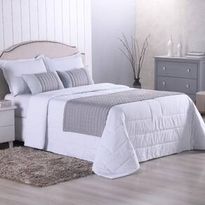 Tecido: 100% poliéster - percal 300 fios Enchimento: 100% poliéster Peças: 01 Peseira 2,40 x 66 cm , 02 Capas de Almofada 55 x 35 cm , 02 Refis de Almofada 55 x 35 cm