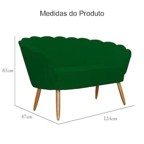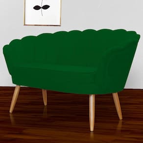 Kit Pétala Namoradeira e 2 Poltronas Decorativa Pés Palito Veludo Verde - LM DECOR