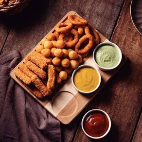 Composta por uma Tábua em madeira Mista com acabamento natural e três potes em porcelana de 75 milímetros de diâmetro, esta petisqueira é perfeita para Servir seus petiscos favoritos com elegância e praticidade.