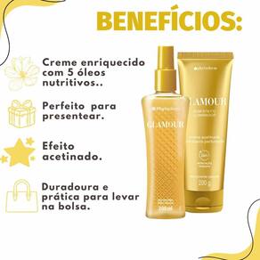 Pele delicadamente perfumada com a luxuosa fragrância Glamour.