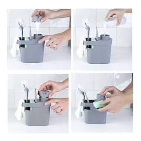 Conteúdo da embalagem : 1 lixeira 4,7 l / 1 dispenser de detergente e organizador de pia/ 1 rodinho de pia / 1 escorredor de talheres