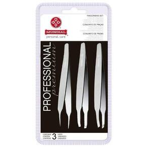O kit vem com 3 pinças: Pinça fina: indicada para desencravar e remover pelos em fase de crescimento; Pinça reta: indicada para a remoção de todos os tipos de pelos; Pinça diagonal: indicada para extrair os pelos um a um pela raiz. Material todo em Aço Inoxidável. Esterilizável em Estufa Autoclave. Design ergonômico: mais controle e precisão aos movimentos. Para melhor conservação de seus produtos evite quedas, mantenha-os secos e lembre-se que são produtos pessoais.