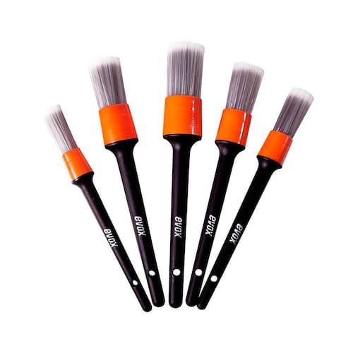 Kit Pinceis de Detalhamento Interno - Evox Kit de pincéis de detalhamento automotivo, desenvolvidos para limpeza das partes internas mais delicadas do automóvel. Composto por cerdas sintéticas com filamento cônico macias, flexíveis e duráveis. Contém 5 unidades INDICAÇÕES DE USO: Indicado para limpeza de costura de banco de couro, banco de tecido, volante, rádio, saída de Ar condicionado, painel, emblemas e cantos de difícil acesso. INFORMAÇÕES ADICIONAIS: Cerdas sintéticas flexíveis de alta qualidade; Resistente a diversos produtos químicos; Não risca a superfície; Pode ser em local seco ou molhado; Design ergonômico; Cabo em polipropileno PP ; Possui furo no cabo para pendurar. Marca: Não Informado Ean: 7898511030547