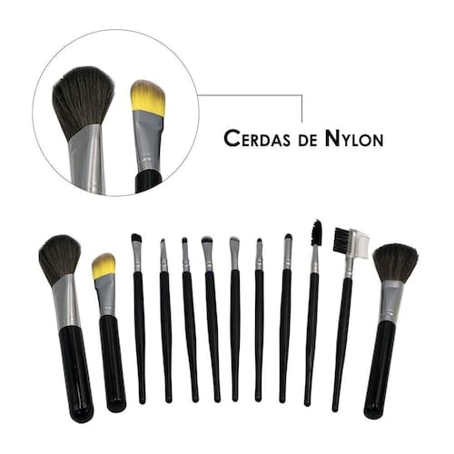 Inclui pincéis para pó, blush, sombra, delineador e muito mais