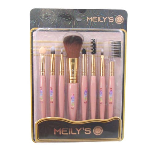 O Kit da Meily's desenvolvido pela empresa Ruby's feito com 8 pincéis para aplicação da maquiagem. Pincéis feitos com cerdas macias para realização de uma maquiagem com acabamento impecável.