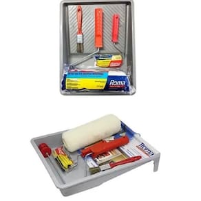 Kit Pintura 5 Peças 655-05 23 Roma O Kit de Pintura Flex é composto por 5 peças essenciais para a pintura de paredes. Com rolos, pincéis e bandejas, você pode pintar como um verdadeiro artista, sem fazer muita bagunça. Este kit é versátil, adequado para renovar qualquer ambiente, seja um quarto, sala de estar ou garagem.As ferramentas são fáceis de manusear, permitindo que as cores deslizem nas paredes com facilidade. Com o Kit Flex da Roma, você tem as ferramentas certas para ajudá-lo a criar ambientes incríveis e aconchegantes.Contém:- 1 bandeja 23cm;- 1 cabo;- 1 rolo de lã;- 1 trincha 317 008;- 1 mexedor de tinta.