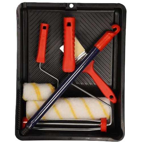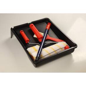 Descrição do produto: O kit de pintura de 6 peças inclui: bandeja de tinta (1523P), pincel chato de 2" (AT315/5), mini cabo extensor, mini rolo de espuma de 9 cm (AT773/9), suporte para rolo tipo gaiola (400/23SR) e rolo de poliéster de 23 cm (773/10).