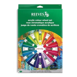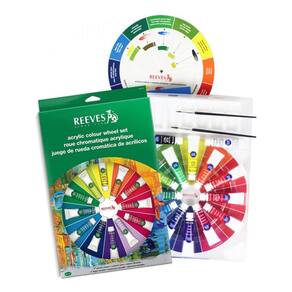 A tinta acrílica Reeves para pintura em tela possui cores vibrantes, fortemente pigmentada que proporciona acabamento impecável. Flexível quando seca, a tinta acrílica Reeves não “craquela”. Extremamente versátil e útil este estojo Wheel Set foi projetado para auxiliar o artista na mistura das cores. Este estojo é composto por 18 peças: 14 tubos de tinta acrílica Reeves de 10ml 2 Pincéis Reeves para pintura em tela 1 Paleta Plástica para mistura das cores 1 Disco de cores exclusivo Reeves O conjunto inclui as cores Branco Titianium, Amarelo Limão, Laranja, Vermelho Brilhante, Carmesim, Rose Madder, Lavanda, Violeta, Azul Phthalo, Lago Azul, Turquesa Profunda, Verde Grama, Amarelo Lima e Preto Marte.