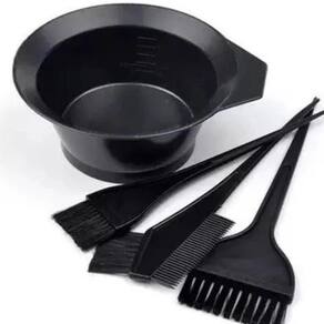 - Kit tintura Ease Care. - Contém Quatro peças, sendo 1 recipiente, 2 pincel e 1 pincel com pente. - Ideal para o preparo de tintas de cabelo, hidratação capilar e demais processos. - Pode também utilizar-se para máscara facial. - Pincel muito preciso, com cerdas macias e estruturadas. - Material de alta qualidade e resistência. - Disponível no tom preto.