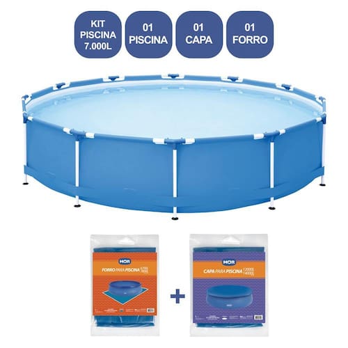 Para ajudar a driblar o calor do verão, a Piscina Circular 7.000 litros é uma ótima alternativa! Ela possui peças plásticas de alta resistência que diminuem possíveis arranhões e marcas no piso, fitas em PVC fixas ao redor da lona, proporcionando maior estabilidade estrutural à piscina, além da tripla camada de sua lona (duas lâminas de PVC com uma trama de poliéster entre elas) que garante durabilidade. Sua estrutura é feita em aço com pintura epóxi à pó e peças plásticas em polipropileno, sendo de fácil montagem e manutenção. Conta ainda com válvula de deságue e entrada para filtro, facilitando sua limpeza. A Piscina 7.000 litros será a alegria das tardes de verão! Compatível com a Capa 001419 e com o Forro 001464.Atenção! Nunca deixe crianças sozinhas perto da água sem supervisão de um adulto.