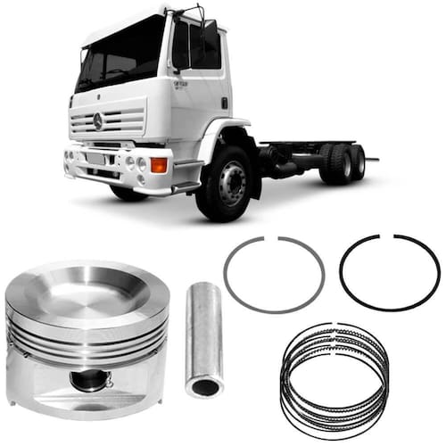 O pistão do motor é uma peça que fica localizada no interior dos cilindros, na verdade cada cilindro possui um pistão. Este componente que na maioria das vezes é fundido em ligas leves se movimenta retilineamente em dois sentidos, para cima e para baixo, e tem por principal função receber, em toda sua área superior, a explosão da mistura de ar e combustível. A explosão da mistura de combustíveis gera um deslocamento de massa de gases dentro da câmara de combustão e o pistão recebe esta força e passa a diante. Os anéis de pistão são peças muito importantes para o perfeito funcionamento do motor. Estas peças de forma circular são fabricadas com uma liga de aço-carbono com um teor de carbono bem elevado, o que da dureza a esses componentes, com certa fragilidade.