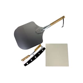 Itens: Pedra refratária, cortador de pizza, espátula de pizza.Peso total: Aproximadamente 2,26 kg.Dimensões: Variadas conforme item (detalhes acima).Material: Pedra refratária, alumínio e madeira.Por que escolher o Kit para Pizzas Broiler?
