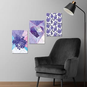 Kit Placa Decorativo com Textura 3 un 20x30 Coração e Flores