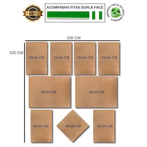 Quantidades: 6 peças 20x30 cm, 2 peças 30x40 cm e 1 peça 30x30 cm