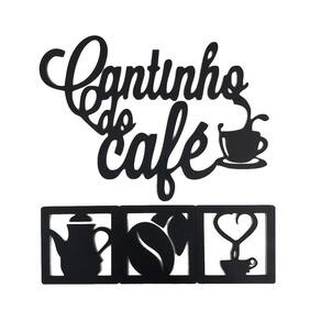 Kit placas mdf cantinho do café painel decorativo plaquinha Cor: preto Essa é a mudança que seu ambiente precisa: plaquinha para cantinho do café, composta por um letreiro e três placas menores, todos confeccionados em mdf de alta qualidade. Ideal para dar um toque especial e charmoso à sua decoração, essa plaquinha harmoniza perfeitamente funcionalidade e estética. Dimensões do produto: Letreiro: 21cm de altura e 25,5cm de comprimento. Plaquinhas menores: 10cm de altura e, no total, 29,5cm de comprimento. Espessura: 3mm. Sobre as plaquinhas: Elegância: enriqueça seu cantinho do café com um toque sofisticado. Com um design elegante, nossa plaquinha se destaca como um detalhe decorativo que valoriza qualquer espaço. Sua casa a sua cara: crie um ambiente acolhedor e convidativo, tornando cada momento de café ainda mais agradável. Visual: perfeita para cozinhas, salas de estar, escritórios ou qualquer local onde você deseje montar um cantinho do café. Sua presença encantadora realça o visual de qualquer ambiente. Instalação O produto pode ser fixado com fita dupla face 3m , adesivos acompanham o item Para superfícies texturizadas recomenda-se o uso de pequenos pregos para pendurar. Facilidade de limpeza e manutenção