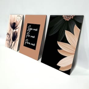 Kit Placas Quadros Decorativos 3 Peças Mdf - Seja Você Produzido em MDF 3mm com aplicação de adesivo com impressão em alta resolução e fitas dupla face no verso para facilitar a fixação. Quadros decorativos são tendências e uma excelente idéia para decorar ambientes de forma econômica e bonita, elas são leves e extremamente fáceis de instalar; além de servir para a decoração de qualquer ambiente, desde estabelecimentos como restaurantes, bares, lojas até quartos, sala, área de lazer, churrasqueira, dando um toque especial em sua decoração. Cada quadro tem a medida de: Largura: 19,0cm Altura: 28,5cm Espessura: 0,3cm Pode ser deixado um espaçamento de até 3cm entre cada quadro no momento da instalação. Ean: 7898928707513