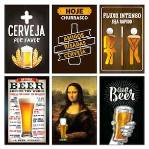 KIT composto por 6 Placas Decorativas de QUALIDADE. Ideal para áreas de lazer, churrasqueiras, bares e muitos outros.