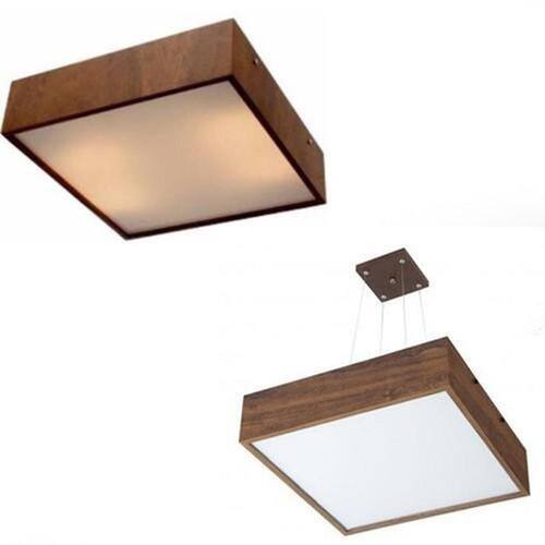 Indicação: Áreas Internas Material: Madeira e Acrílico Madeira: Imbuia Resistente a Maresia Dimensões: Largura 50cm x Altura 10cm x Comprimento 50cm Quantidade: 04 Led - Não inclusa Voltagem: Bivolt Soquete: E-27 Comum
