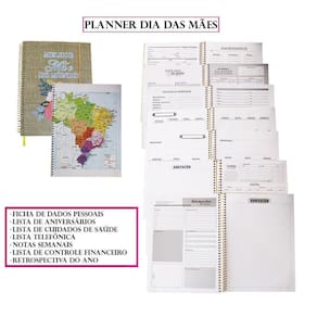 Com 80 páginas, no Planner inclui: - Um mapa do Brasil. - Ficha de Dados Pessoais: com Documentos, Saúde, Comercial, Bens e Bancos. - Lista de Aniversários com cada mês do ano. - Esse ano eu quero. - Cuidados de Saúde. - Lista Telefônica. - Lista Semanal e Mensal: para planejar eventos futuros. - Notas e Lembretes: para registrar informações importantes. Da semana. - Lista de Controle Financeiro do Mês. - Lista sobre Retrospectiva do Ano.