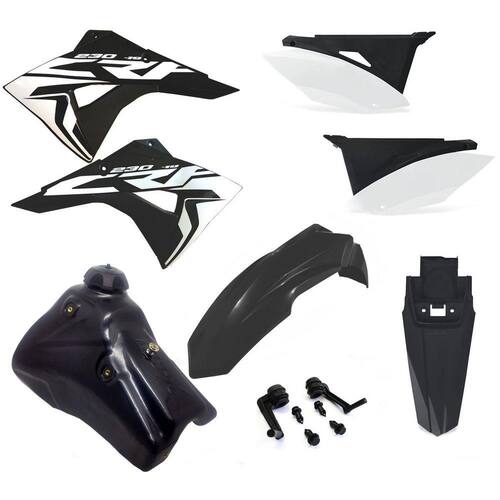 Kit Plástico Biker Next Crf 230 2007 P/ 2020 Adesivos e Tanque - Cores: Preto / Branco