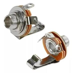 Kit Plate Jack Oval Metal Cromado Guitarra Placa J10 + Jack Mono J10 P10 Circuito Fechado Guitarra Baixo Violão MXT