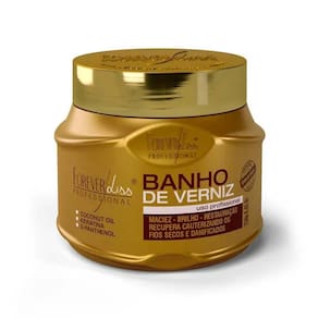 A Máscara Banho de Verniz Forever Liss 250g contém princípios ativos que reparam os fios, hidratam e selam as cutículas, de forma a manter os cabelos saudáveis e hidratados por muito mais tempo. Com Óleo de Coco, D’Pantenol, Phytoqueratina, ela trata a porosidade dos cabelos, que é responsável pelo aspecto opaco dos fios. Ao nutrir e hidratar, proporciona maciez, leveza, fios alinhados, redução do frizz e um brilho incrível que vai elevar a beleza dos seus cabelos. Além disso, ele realça a cor e fortalece os fios evitando que eles fiquem quebradiços.