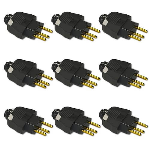 Kit Plugue Macho 2P+T 20A 250Vca Preto 100 peças -
