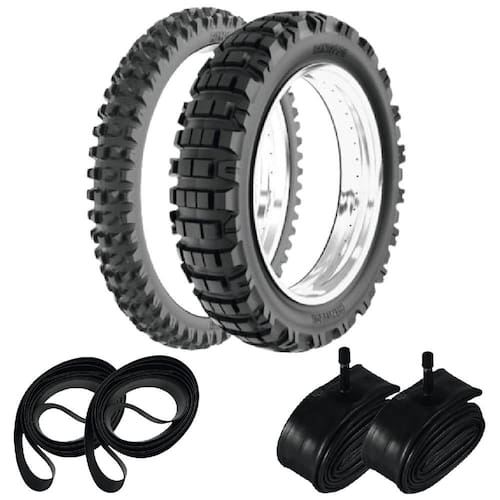 Kit Pneu Moto Cross Trilha 140/80-18 + 90/90-21 He42 Rinaldi + Camaras + Cintas