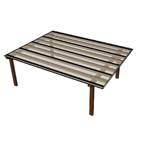 4,00m de largura x 4,00m de avanço (sentido da caída da água)09 caibros/travessas (espaçamento de 50cm)caimento de 10%Considerando 5 pontos de fixação