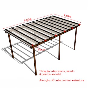 Pode ser aplicado em pergolados/estruturas, claraboias, toldos e garagens desde que seja respeitada as recomendações para a estrutura a seguir
