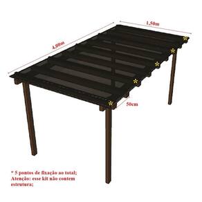 4,00m de largura x 1,50m de avanço (sentido da caída da água)09 caibros/travessas (espaçamento de 50cm)caimento de 10%Considerando 5 pontos de fixação