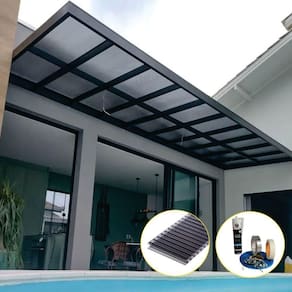 kit Policarbonato Fume 6mm 7,00m x 6,00m - Perfis Pretos - O que contém este kit: