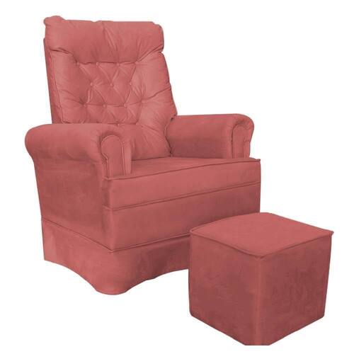 Kit Poltrona De Amamentação Sarah Com Balanço Com Puff Quadrado Suede Rose -bebêzin