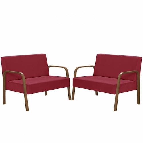 Kit Poltrona Decorativa 2 Namoradeiras De 2 Lugares Jade Braço Madeira D Salla Suede