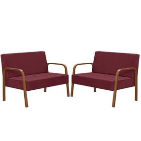 Kit Poltrona Decorativa 2 Namoradeiras Jade Braço Madeira D Salla Suede - Bordô
