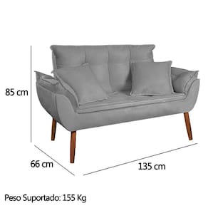 Kit Poltrona Decorativa Namoradeira 2 Puffs Quadrado e 2 Almofadas Suede Cinza Claro - LM Decor