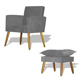 Kit Poltrona Decorativa Nina Com Puff Opala - Cinza Cinza Kit Poltrona Nina com Puff Opala