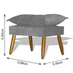 - Puff Retangular; - Estrutura em Madeira MDF - Acabamento Tecido Suede - Revestimento em fibra siliconada - 04 Pés palito; - Sistema de montagem: Parafs.