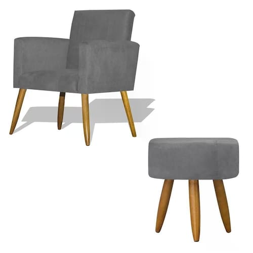 Kit Poltrona Decorativa Nina Com Puff Redondo - Cinza Cinza