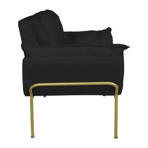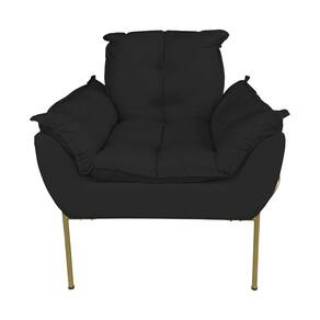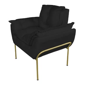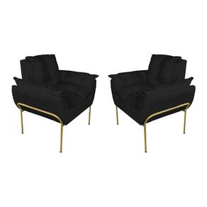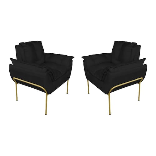Kit Poltrona Decorativa para Consultório Base Dourada Suede - Vallisa Decor - Preto