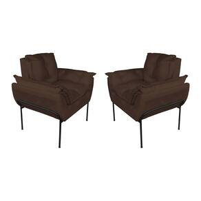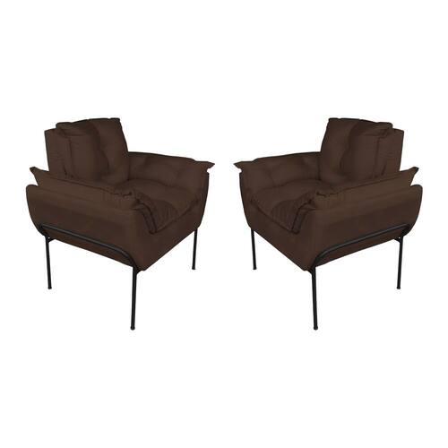 Kit Poltrona Decorativa para Consultório Base Preta Suede - Vallisa Decor - Marrom